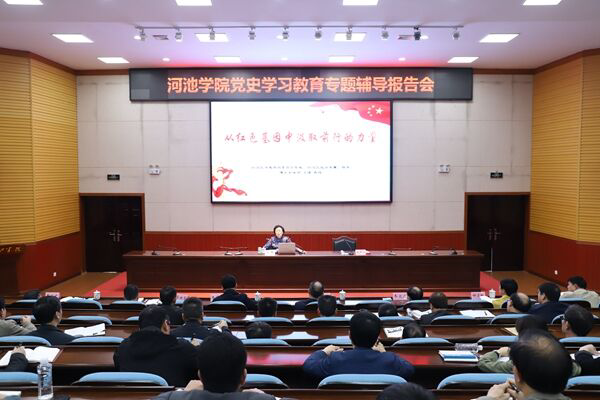 两个月以来,河池学院开展党史专题学习教育550场次。学校党委充分发挥“关键少数”的示范带头作用,制定了党委常委“党史学习教育专题读书班”专题学习计划,成立了学校党史学习教育宣讲团,深入15个二级党委开展巡回宣讲。持续开展校外专家到校辅导和校内专家到地方辅导13场次。全校83个党支部正全面推进党史学习教育走深走实,广大师生在知史爱党、知史报国、知史荣校的浓烈学习氛围中,斗志昂扬,奋发有为。